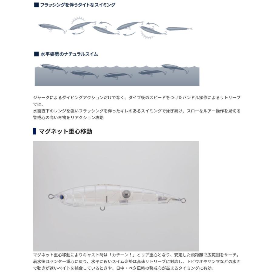 また、マグネット重心移動による水平に近いスイム姿勢が急激な浮上を抑えることで、吸い込みの浅いミスバイト後も背後の視界から外れることなく追い食いを誘発。