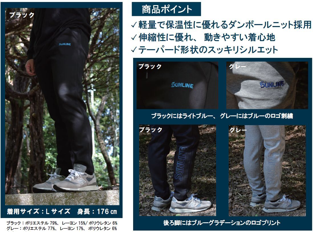 (28%引) サンライン ダンボールニットパンツ M L LL ブラック グレー SUW-15509 フィッシング ズボン ウエア 磯釣り 鮎 船 ルアー 釣具