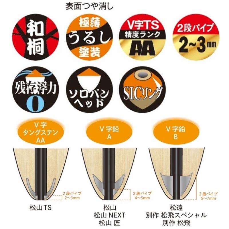 ※松田ウキは職人による手作りでの製造工程のため、自重や大きさに若干のバラつきがございます。