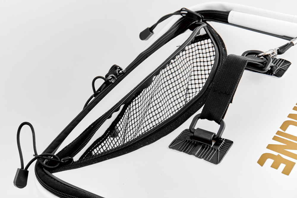 釣った魚を入れやすい投入口、水切れの良いメッシュ素材、釣った魚が吐き出すエサや鱗が