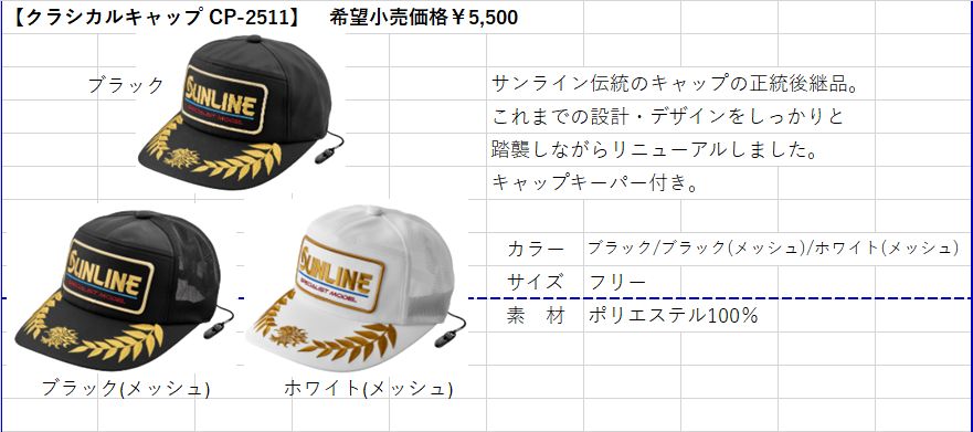 (28%引) サンライン クラシカルキャップ CP-2511 ブラック ブラック(メッシュ) ホワイト(メッシュ) フィッシング 帽子 ウエア 磯釣り 鮎 船 ルアー 釣具 (2026年新製品予約4月発売)