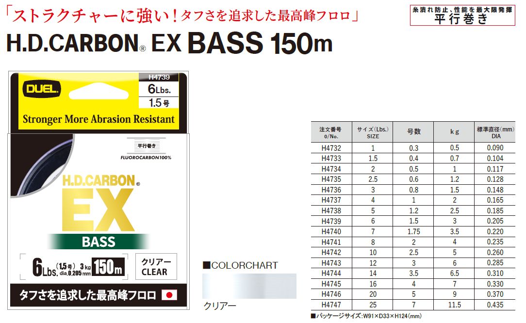 DUEL H.D.カーボン EX BASS 5号 20LB 150m HDカーボン EXバス H4746 デュエル 日本製 国産フロロカーボン ライン 釣り糸