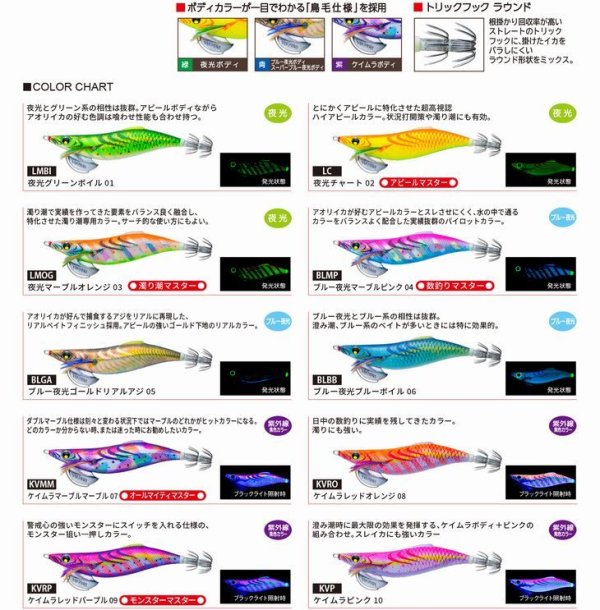 根掛かり回収率が高いストレートのトリックフックに、掛けたイカをバラしにくいラウンド形状をミックス。