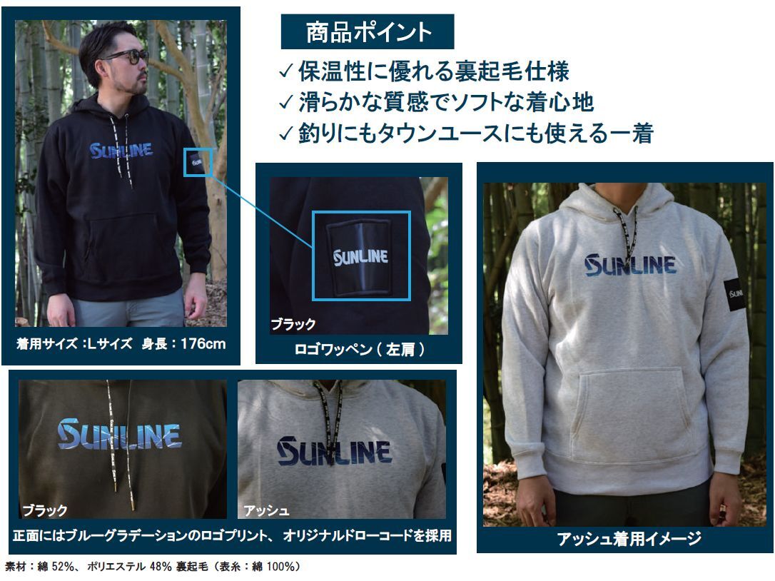(28%引) サンライン ブラッシュドプルオーバーパーカー M L LL ブラック アッシュ SUW-15508 フィッシング ウエア 磯釣り 鮎 船 ルアー 釣具 (2025年予約11月発売)