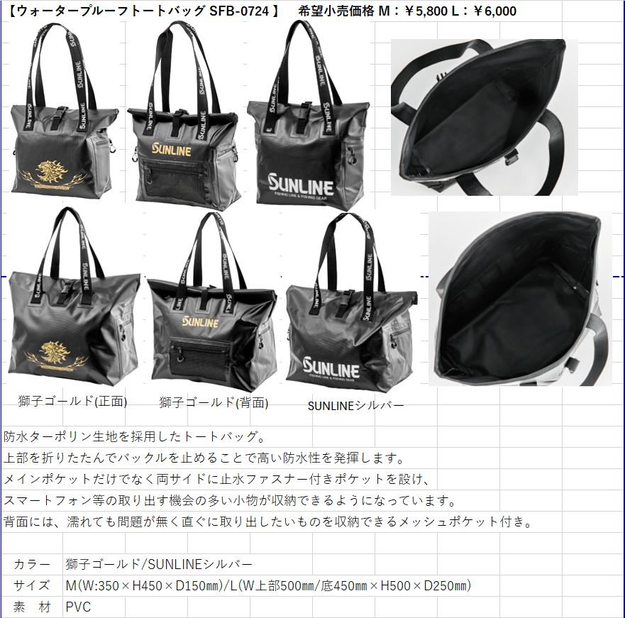 (28%引) サンライン ウォータープルーフトートバッグ M SFB-0724 ゴールド シルバー フィッシング バック カバン 磯釣り 鮎 船 ルアー 釣具 (2026年新製品予約4月発売)