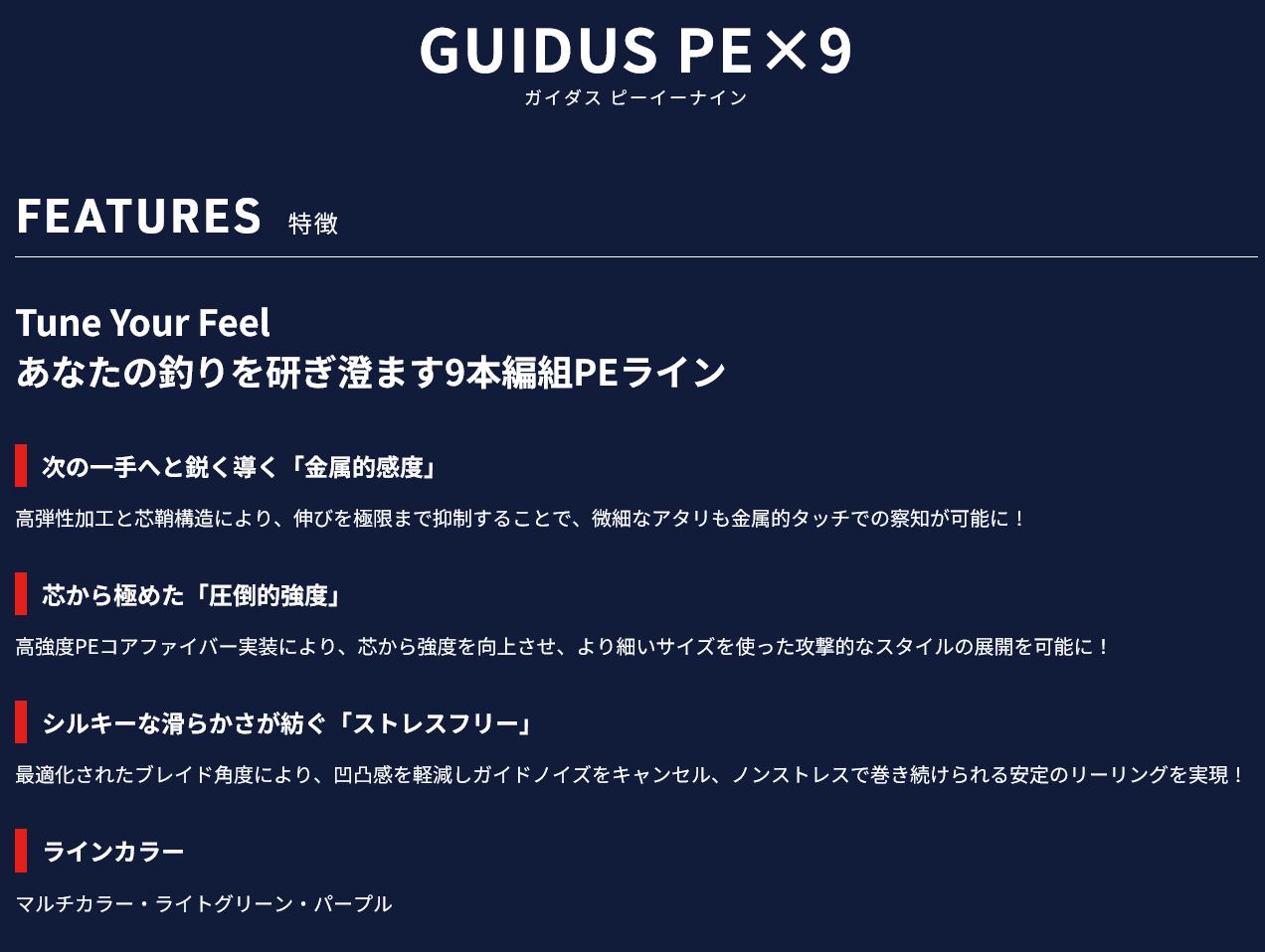 ゴーセン ガイダス PEx9 マルチカラー 0.5号 0.6号 0.8号 1号 1.2号 1.5号 2号 3号 4号 300m GUIDUS PE×9 5色分け 日本製 国産9本組PEライン 釣糸